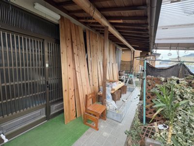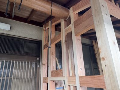虹梁(丸太梁)や柱(丸太)が少し厄介です。