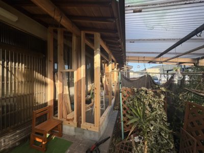 とはいっても、既製品のサンルームを取付けるには無理がありました。